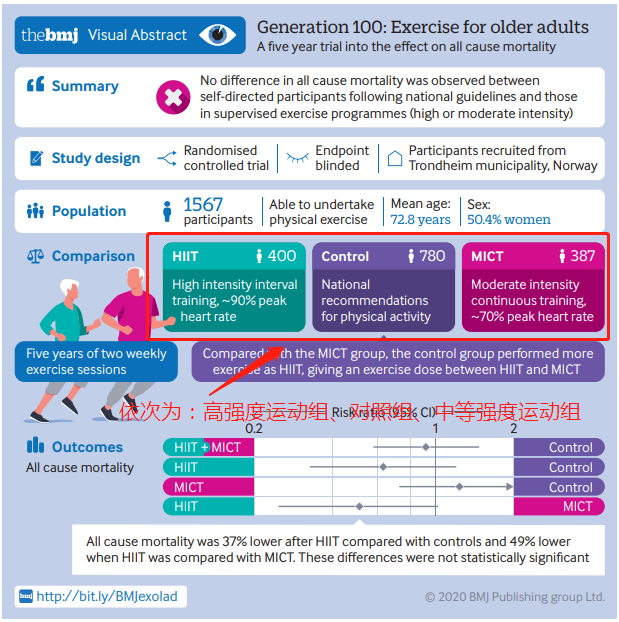 [3]Dorthe Stensvold,et,al.Effect ofexercise training for five years on all cause mortality in older adults-theGeneration 100 study:randomised controlled trial.BMJ2020; 371doi: https://doi.org/10.1136/bmj.m3485(Published 07 October 2020)