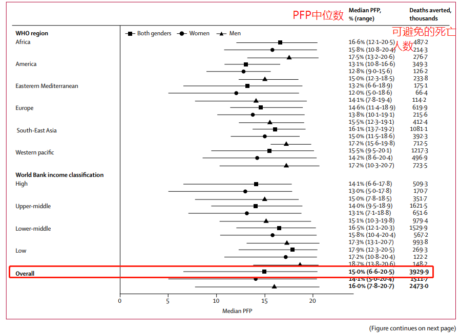 △研究者利用PFP(人口预防比例)模型,对全球人群运动情况进行评估,发现运动能避免15%的人早死,相当于390万人。/图源:研究报告截图