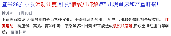 此外,过度运动还会损伤人体肾脏。网上一搜,因过度运动而诱发横纹肌溶解综合征,导致急性肾损伤的案例比比皆是。