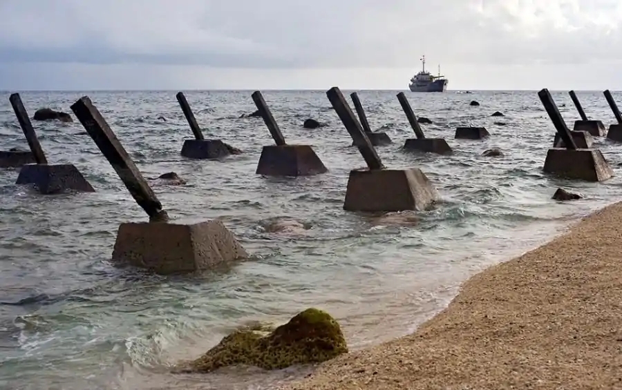 ▲台湾金门岛沿海反登陆障碍带