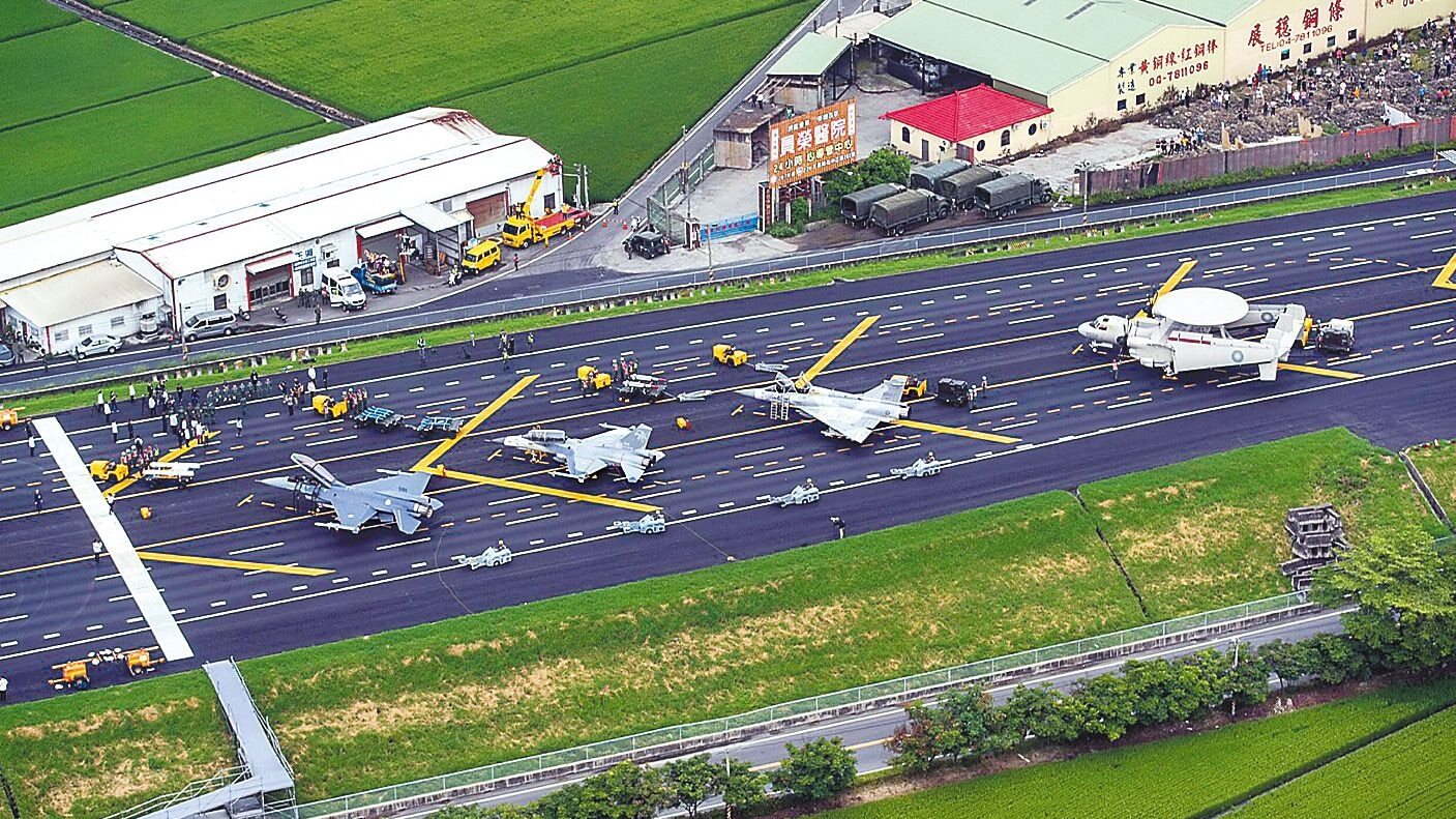 ▲台军利用高速公路进行战机战备起降