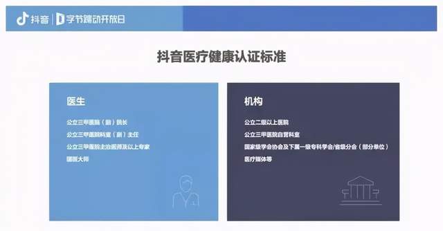 “认证医生和机构的资质目前有半年审、年审机制,同时上线了人镜一致排查,确保获得认证资质的人和出现在镜头前科普的医生为同一人。”抖音健康安全策略负责人张晨称。