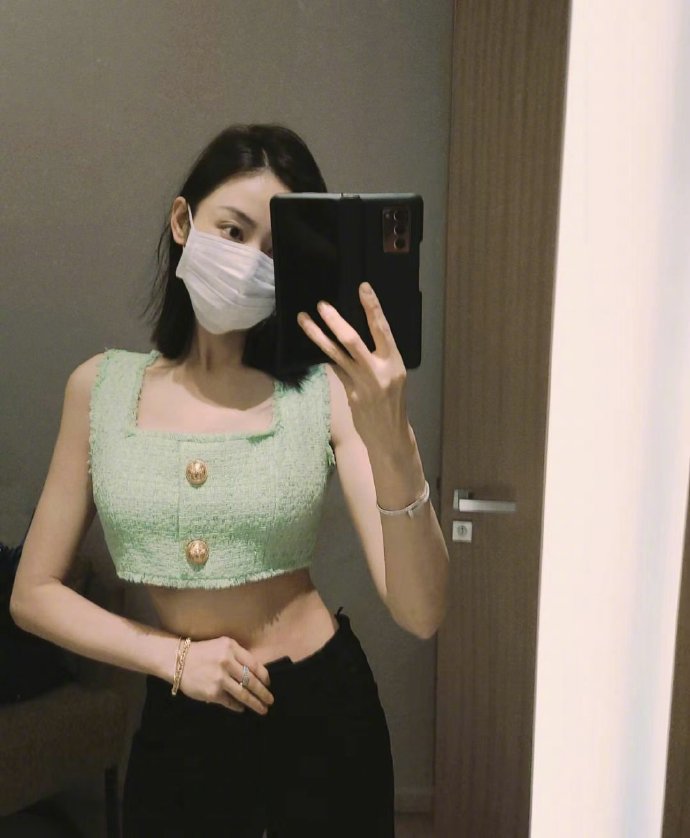 即使穿一件短款绿色小背心,露出的腰也是绝绝子了。讲真,这腰可以直接出道了吧?