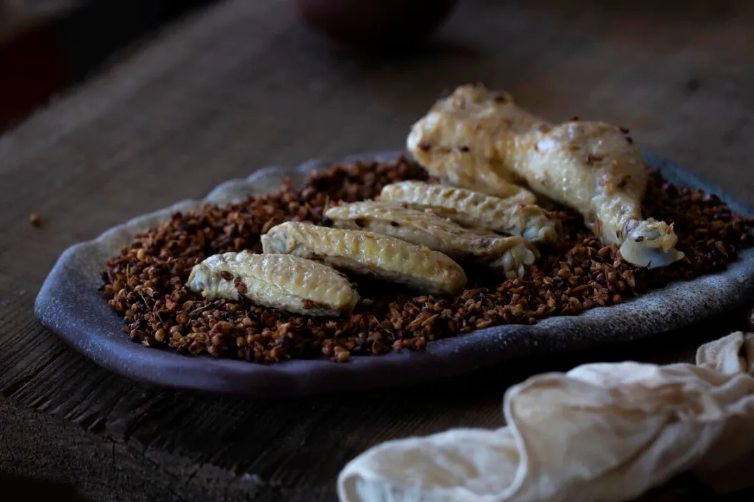 这种令人有些古怪口感的风味,出奇地取自四川生花椒。将其与小葱叶一起剁碎,加盐、少许酱油、芝麻油和冷鸡汤调和成糊状滋汁使用,通常用来凉拌肉类与家禽。