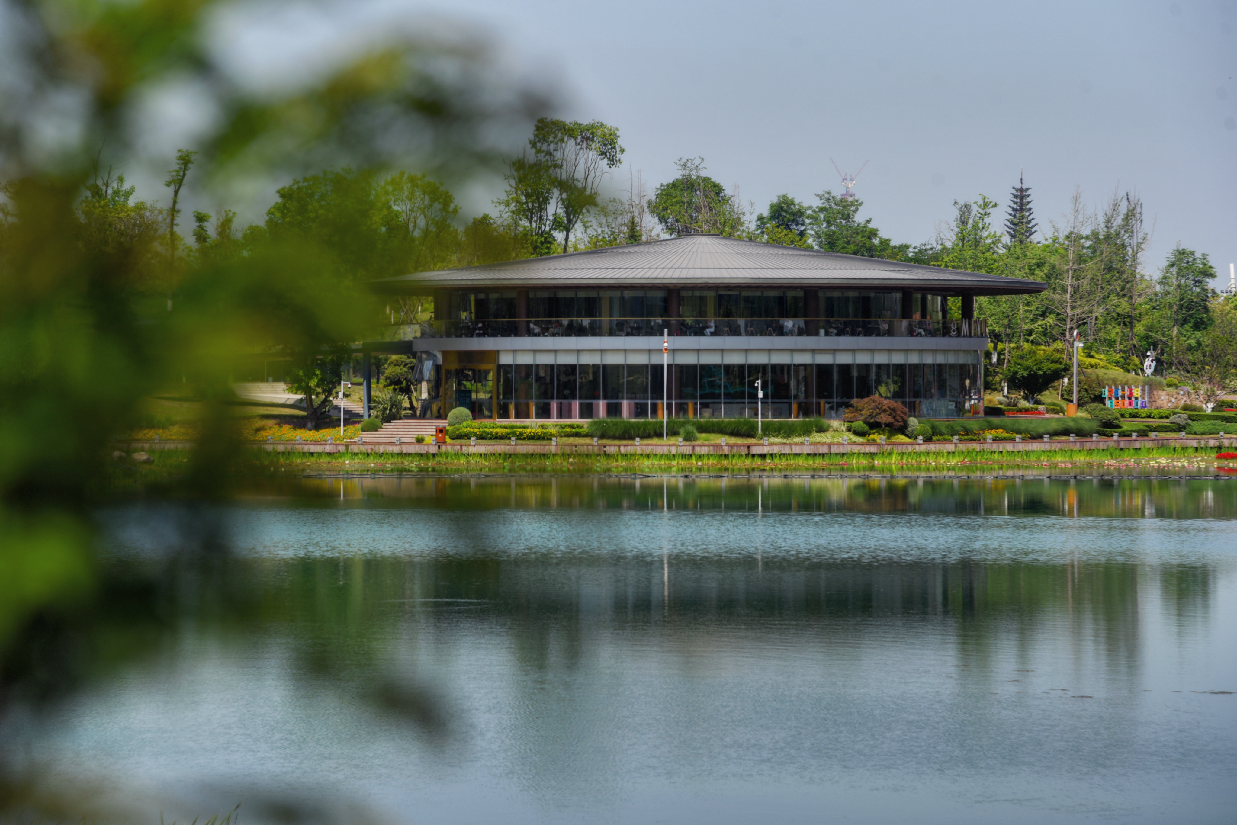 正是由于上述原因,使得桂溪生态公园成了天府绿道的典型代表之一,天府绿道规划展示中心也在这里。1700平方米的钢结构、全玻璃立面圆形单体建筑也让它成为公园内的一道风景线,展示中心不收取门票,里面可以自由参观,刚提到的弥远咖啡就在展示中心的二楼。