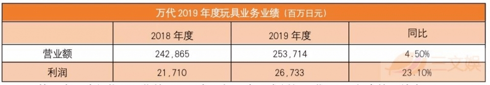受疫情这一突发性灾害影响, 奥飞娱乐在2020年度亏损4.5亿元,万代营收同比也有下降。所以,就以2019年度财报为参考: