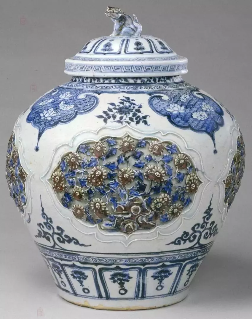藏于河北省博物馆的这件青花釉里红盖罐作为元代鼎盛时期皇家艺术的代表作,其价值与鬼谷子下山大罐相较,甚至更高。