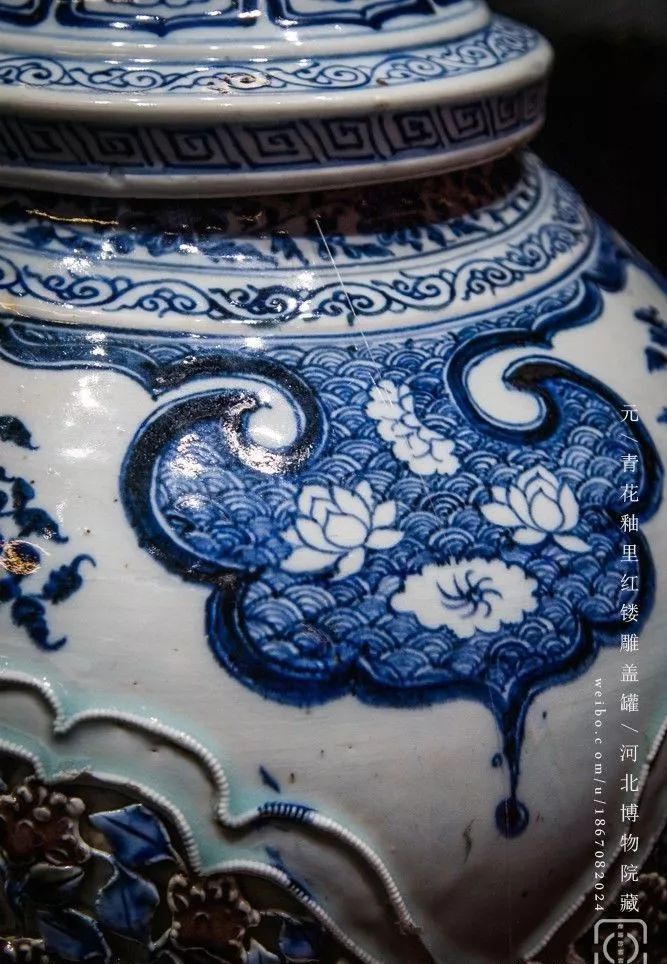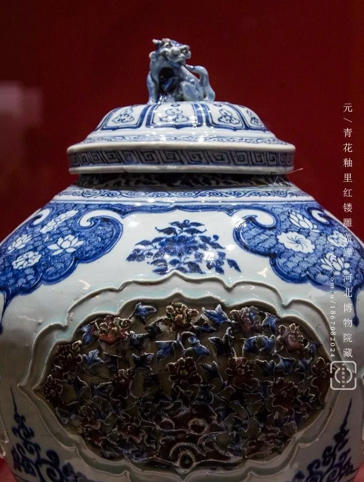 出土半个世纪以来,直到上世纪90年代,这件国宝仅有过一次十多天的短暂的公开展示。直到2013年6月,河北省博物院新馆开放,这件元青花釉里红盖罐和与它同时出土的青花海水龙纹带盖八棱瓶等珍贵文物,才首次有机会让世人充分领略它们的容颜。