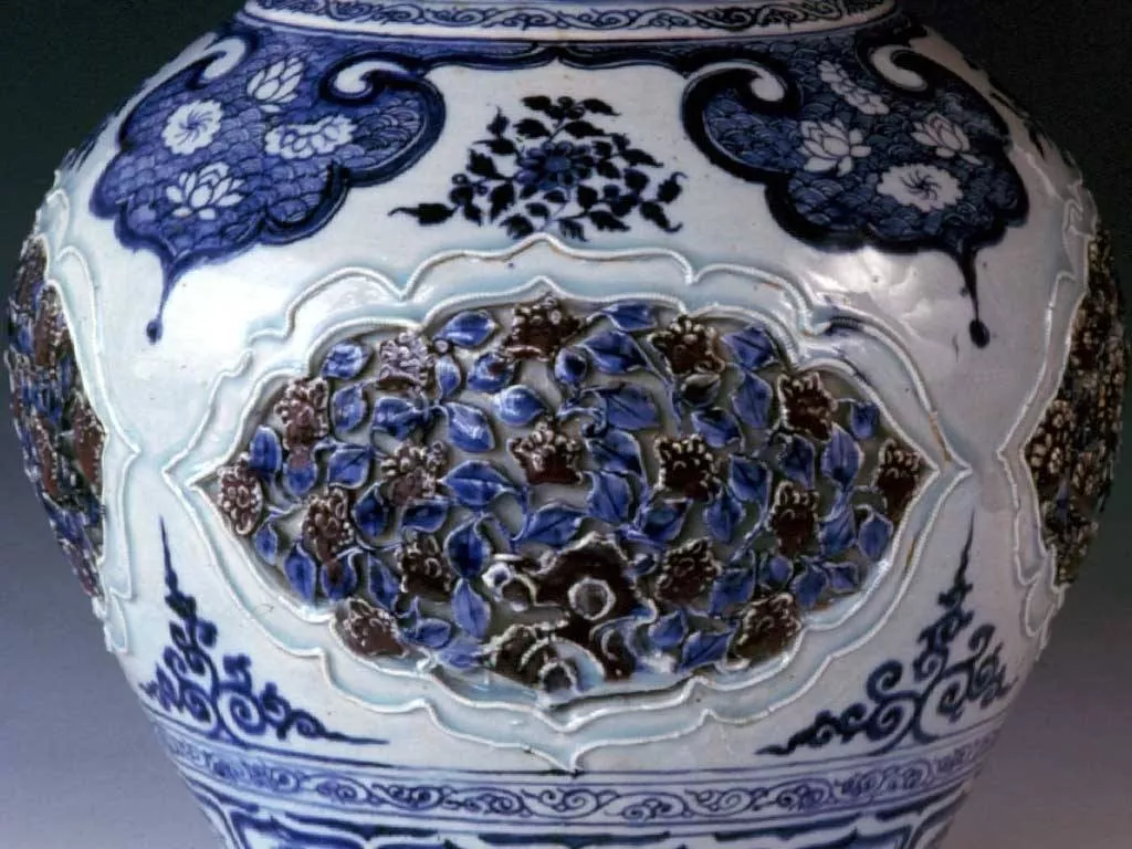 到了元代后期,景德镇窑采用瓷石加高岭土的“二元配方”,借鉴磁州窑和吉州窑釉下彩绘技术,引进西亚“高铁低锰”的钴料,才将青花瓷器创烧成功。