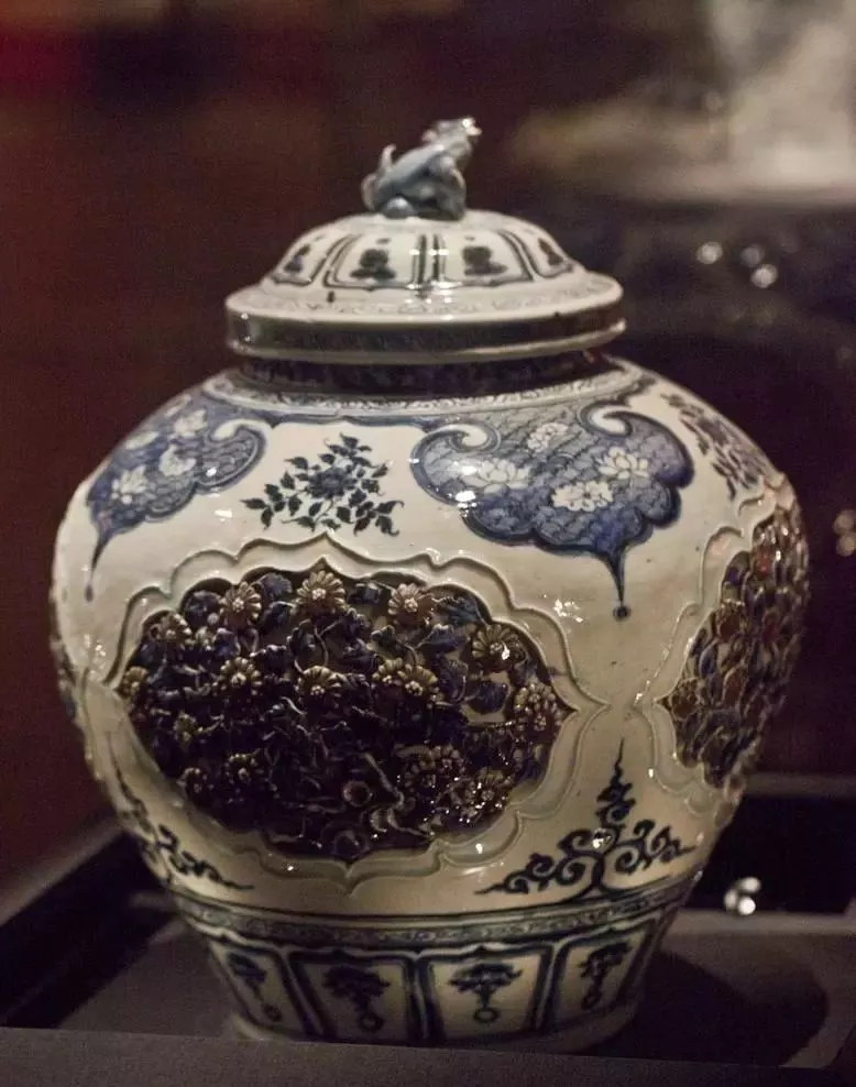 2.3亿人民币,以当时的黄金价格换算,约合两吨黄金,元青花的珍贵可见一斑。目前全世界元青花完整器存世量仅三四百件,我国各地博物馆收藏的元代青花瓷器仅120余件。