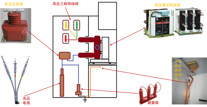 出线高压电缆(出线侧通过高压电缆与用电负荷连接)。