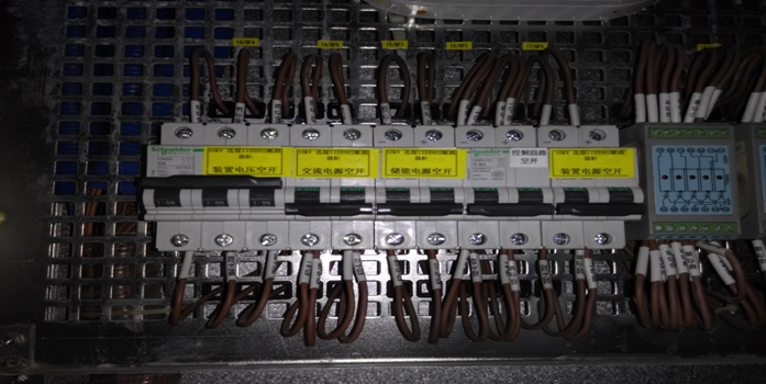 F11:(开关柜分闸、合闸回路控制电源,不合或失电后无法通过DCS集控或就地操控面板控制分合,操作票中叫“控制电源”小空开)。