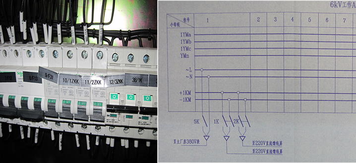 直流小母线:为单个开关柜内电气设备提供直流电源,其总电源从直流系统馈线柜来(直流系统馈线盘→馈线盘小空开→高压柜内直流总空开1K、2K→直流小母线→段上各开关柜内直流小空开),6kV、10kV共用该段的柜顶直流小母线,1K、2K在6kV电源进线断路器柜继电器仪表室内,各开关柜内直流小空开有: