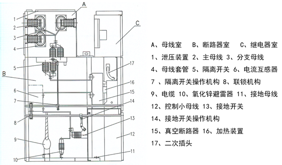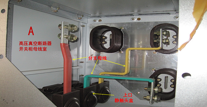 分支母线(从主母线引出的分支至断路器上口静触头);静触头盒(支持、固定断路器上口静触头,并使上口静触头对柜体绝缘)