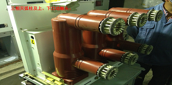 ⑩ 三相灭弧柱及上、下口动触头(接通和断开一次回路的主要部分)。
