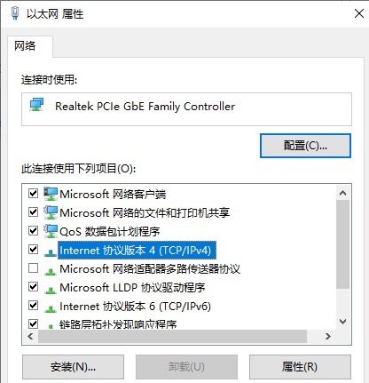 4、选择“Internet协议版本4”—属性。
