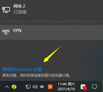 1、点击任务栏右下角地球网络图标——网络和Internet设置,或者右键地球图标——打开网络和Internet设置