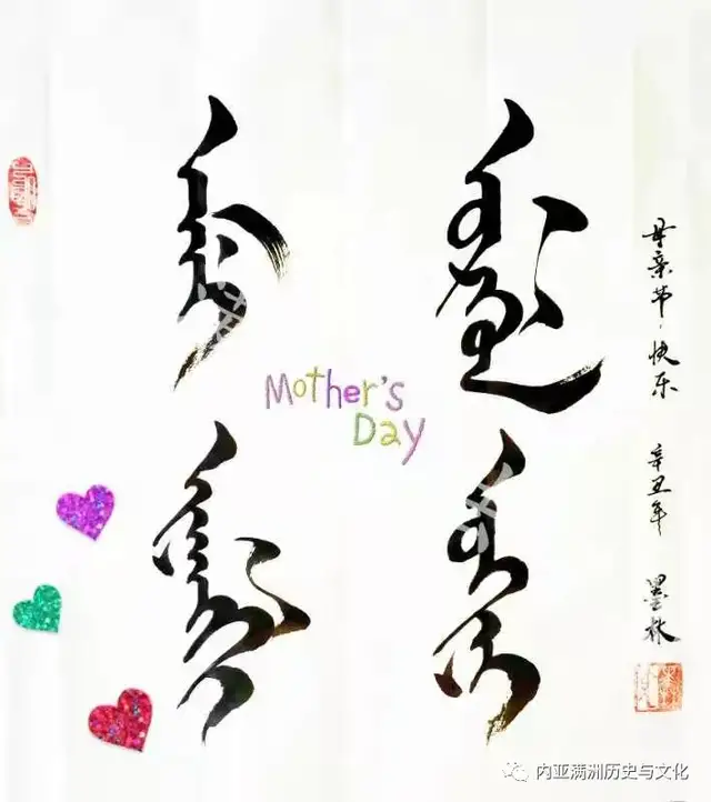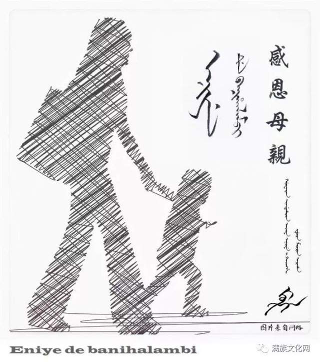 墨林格格每到传统节日或二十四节气,总给我发来她写的满文书法,这是昨天她发来的满文母亲节快乐的书法。