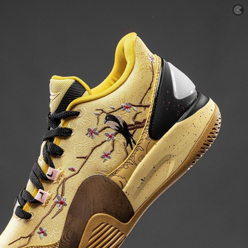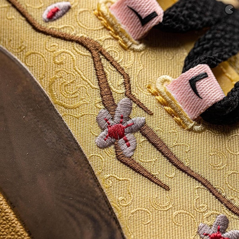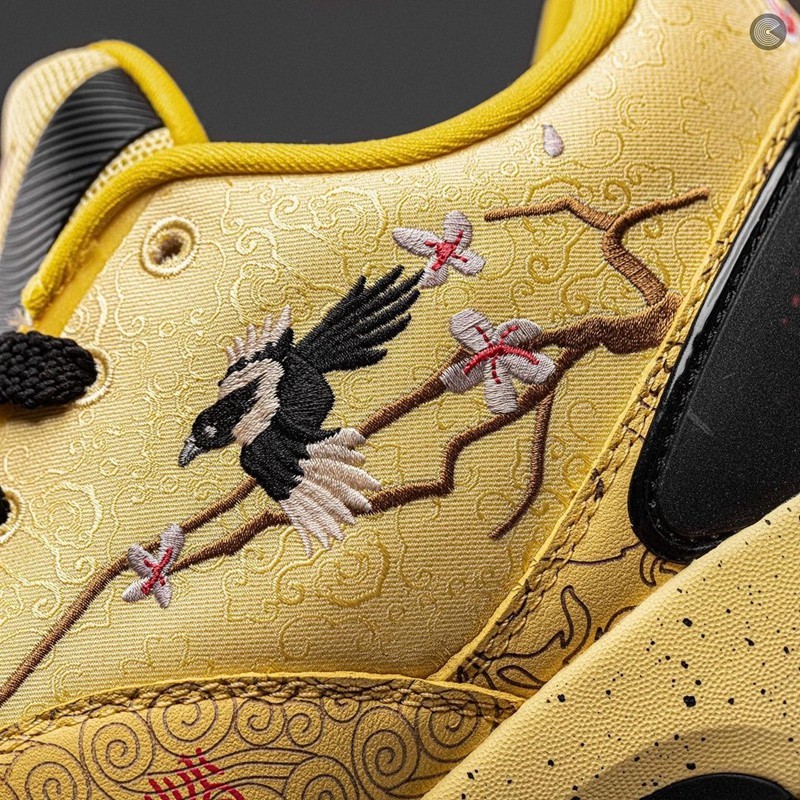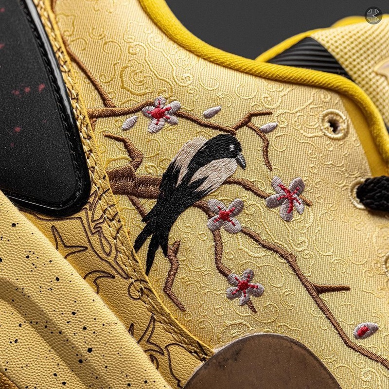 由球鞋摄影师 @weocia 为我们曝光,可以看到第一款“喜上眉梢”配色,采用黄色为基底,辅以喜鹊与梅花树刺绣,视觉效果精致,寓意美好。