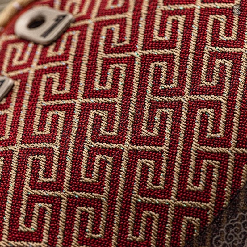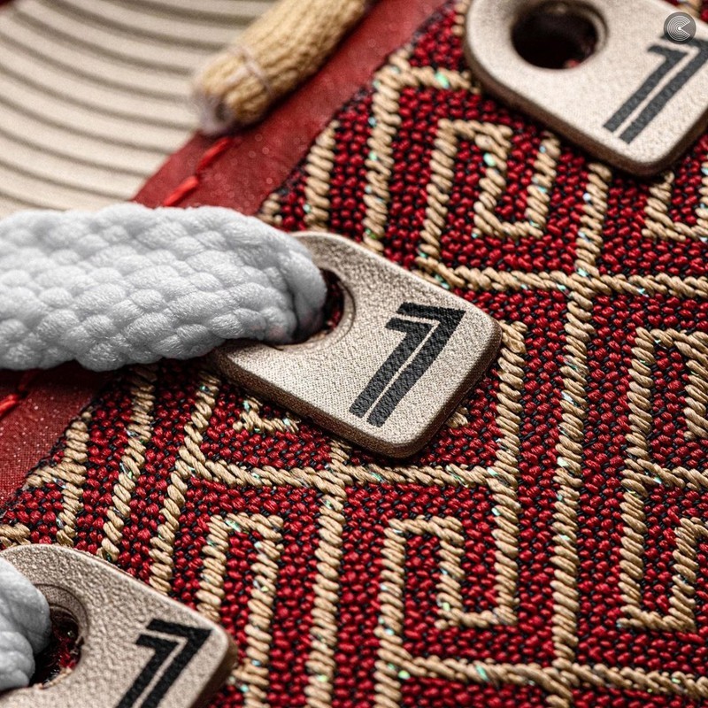 第二款“旗开得胜”配色采用喜庆的大红色调搭配金色细节呈现,独特的花纹加上“旗开”、“德胜”字样以及八卦图案,国风浓郁。