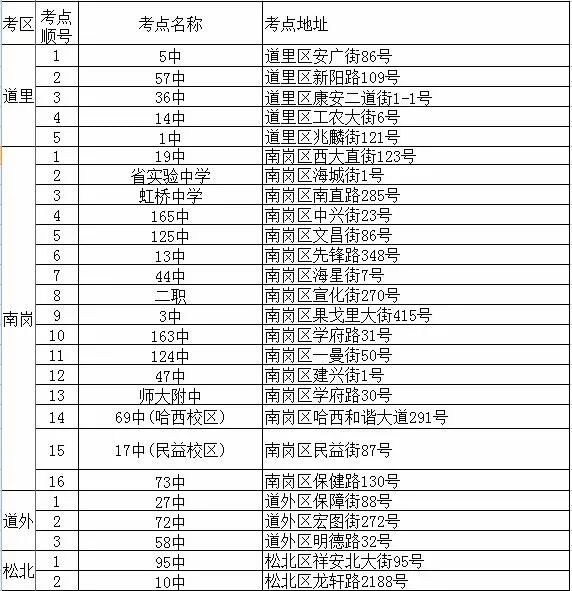 可能有家长要问了,往年咱们哈尔滨都有哪些考场呢?