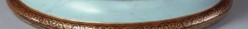 第五层,装饰一道松石绿釉,这同样又是一层仿生瓷,以松石绿釉和开片纹相结合,模仿天然绿松石的颜色和铁线,惟妙惟肖。