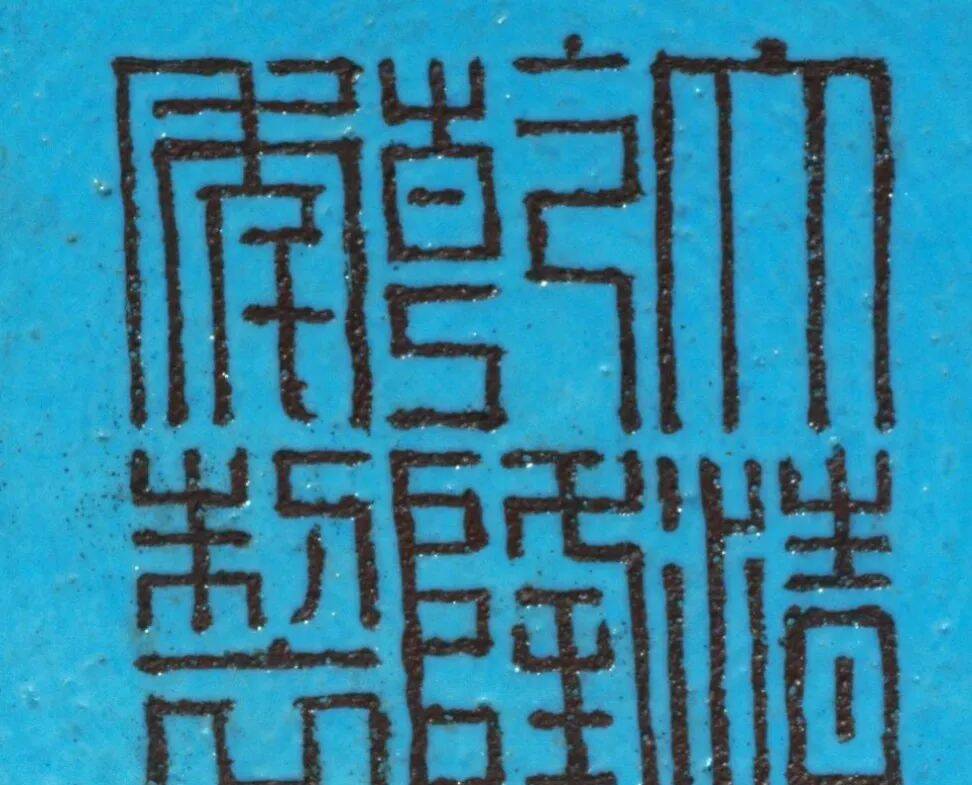 瓷母的底足及圈足内,施松石绿釉,瓶底中心用青花篆书三行六字款,“大清乾隆年制”。