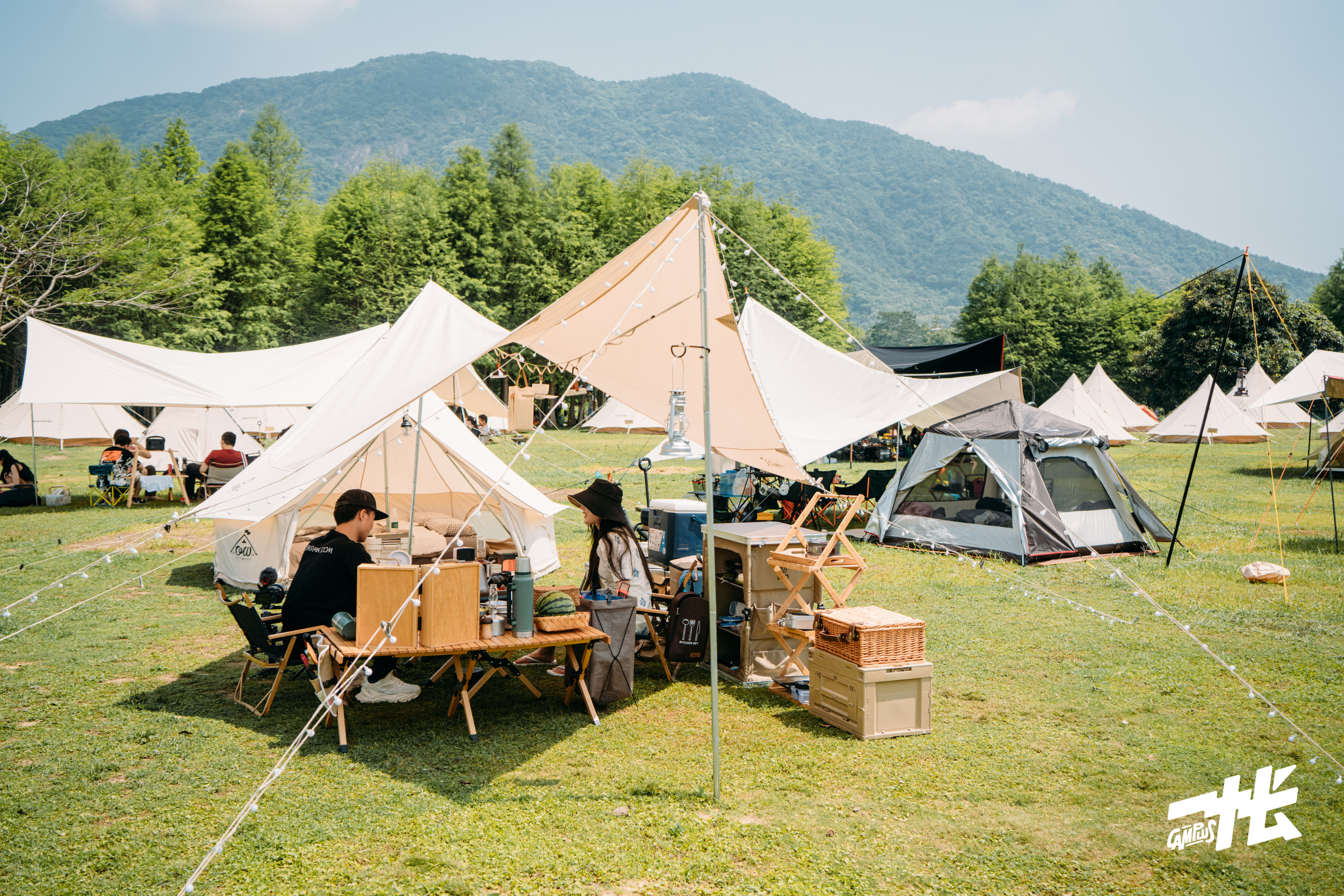 从错落有致的帐篷前升起的烟火、面朝湖水的精致午餐、在露营会尽情放飞天性的小孩子们…….一幕幕场景都是对生活本质的回归。