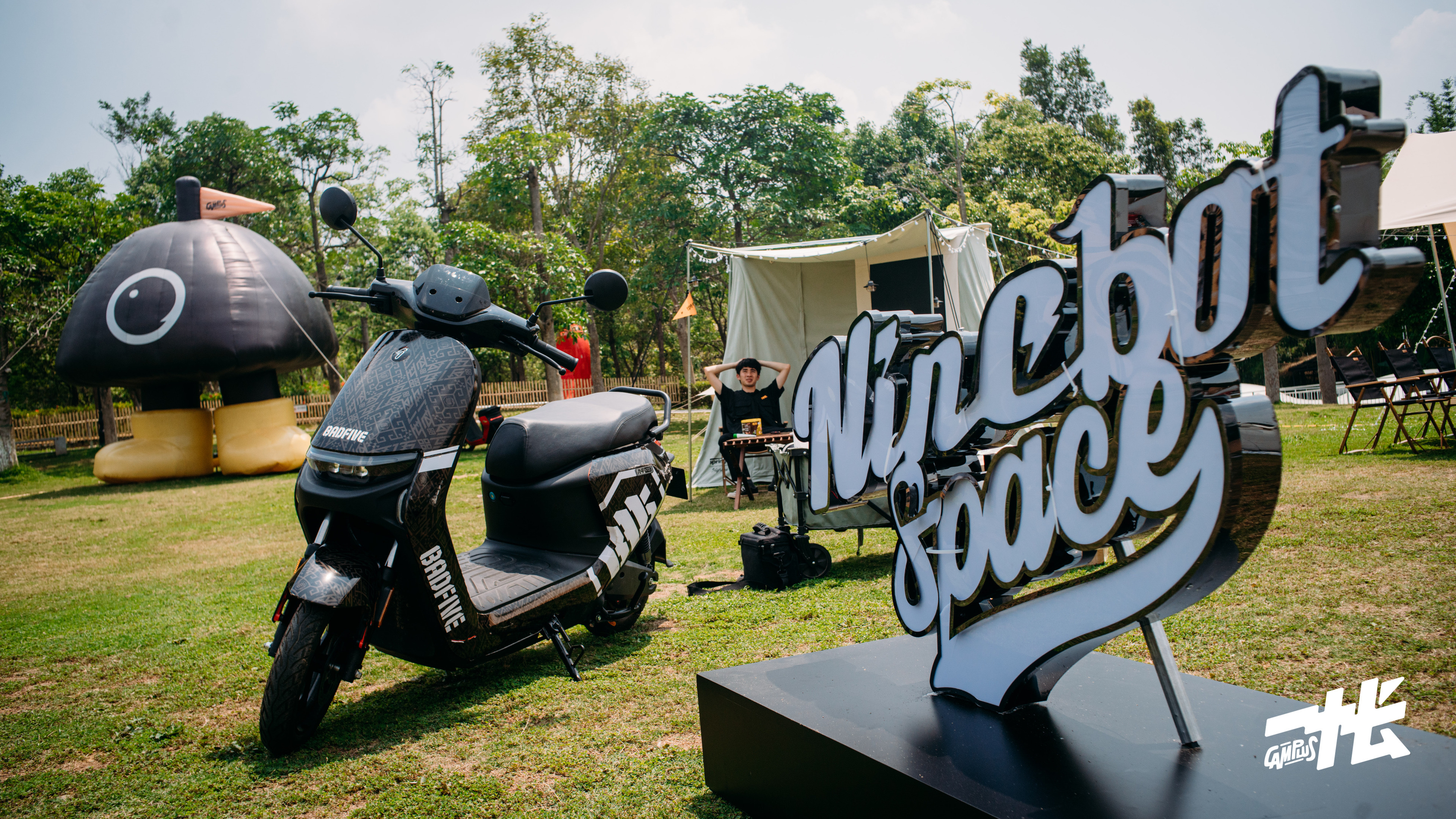 本次活动的官方合作伙伴九号电动在一帐露营会智行山野板块带来倍受瞩目的电动车新品。包括“C、A、N”三个系列的智能电动车以及与中国李宁合作设计的“九号·李宁反伍限量定制款电动车“。骑行九号真智能电动车,穿行于营地内外,感受自然野趣和户外骑行美学。