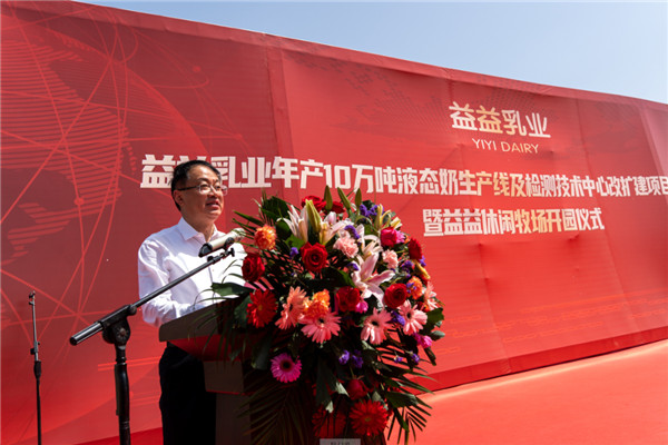 上午9时58分,淮南市副市长邬平川先生宣布“安徽益益乳业年产10万吨液态奶生产线及检测技术中心改扩建项目奠基仪式暨益益休闲牧场开园仪式”正式开始。