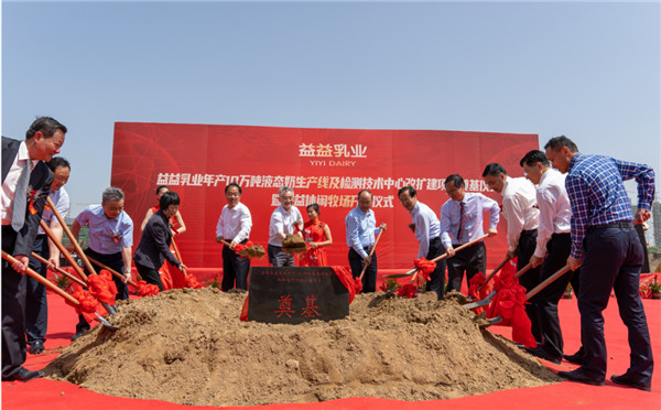 随后,各省市领导、集团公司领导、益益乳业公司领导为二期改扩建项目培土奠基。