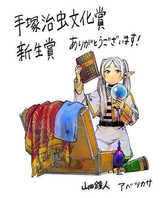 《葬送的芙莉莲》原作者山田钟人表示对获奖感到惊喜,并表示自己的故事以表达感情见长,也没有什么花里胡哨的东西,今后会继续努力;而作画アベツカサ则向编辑和原作致谢,表示自己对获得冠以手冢治虫之名的奖项感到光荣。