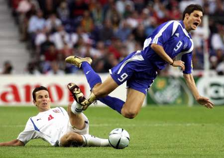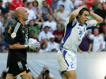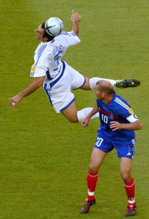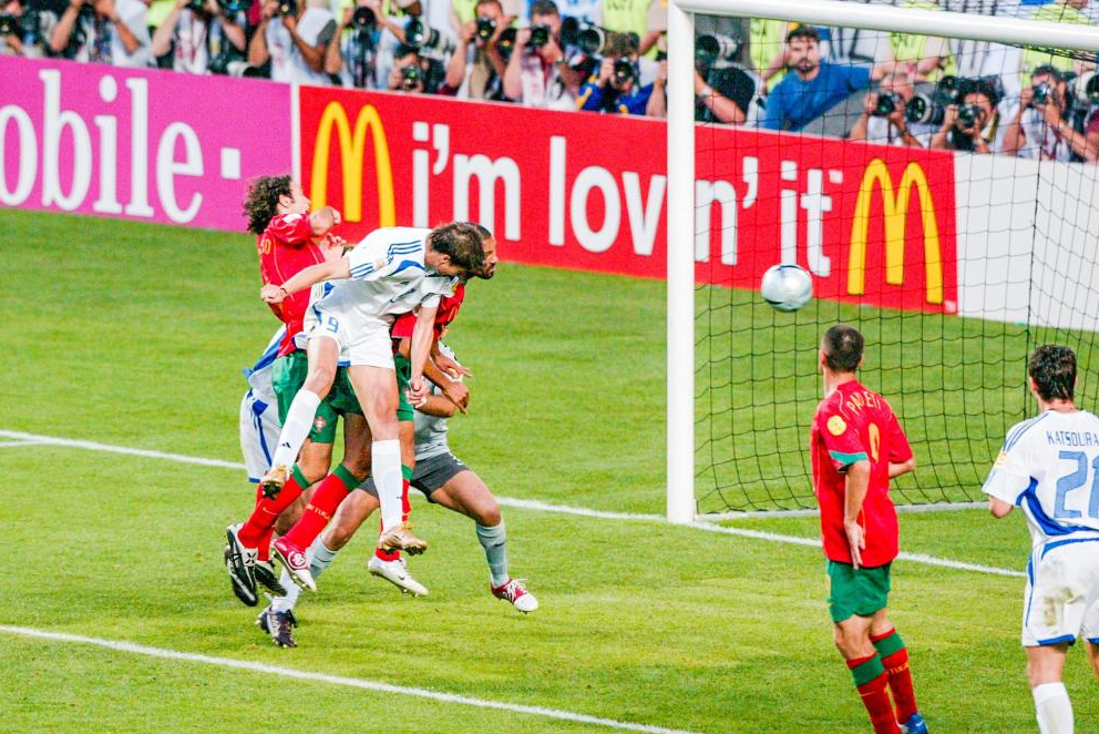 淘汰赛的首轮比赛,希腊队就遭遇了强大的法国队,当时法国阵中有齐达内和亨利的组合,比赛过程中希腊队对齐达内做了重点盯防,法国队迟迟没能找到破门的机会,锋线上的亨利也被重重防守盯得很难受,最终,本场比赛又是查理斯特亚斯头球打破了僵局,希腊队淘汰法国打进4强。