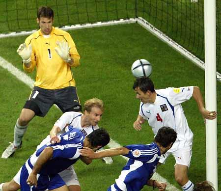 半决赛里,他们又遭遇了内德维德领先的捷克队,当时的捷克,实力也是非常强大,除了内德维德外,锋线上还有巴罗什以及高中锋扬.科勒。捷克队之前的4场比赛拿到了全胜。本场比赛双方打到了加时赛,本届杯赛加时赛实行银球制,上半场若是一方取得领先,则比赛不再进行下半场。最终,加时赛上半场即将结束的时候,希腊队开出角球,德拉斯抢点破门,捷克队被银球绝杀。而上届欧洲杯上,捷克队是金球制的首个受害者,本届他们又成了第一个被银球淘汰的球队。