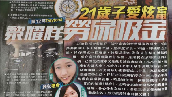 而儿子更是被港媒拍到手戴价值12万的劳力士出门泡妹。