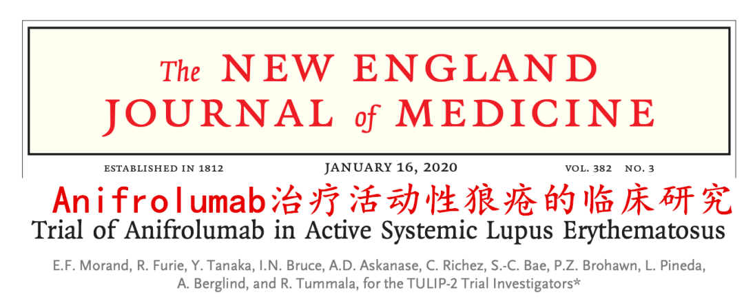 Anifrolumab,是发表不久的治疗狼疮的药物。FDA目前还没有批准。III期临床研究结果显示有显著效果。