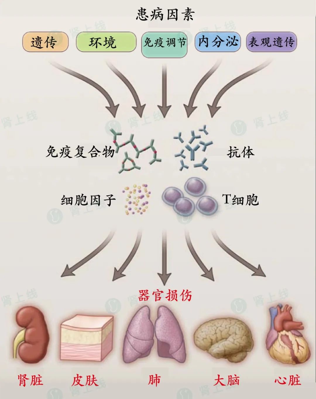 下图非常形象地解释了系统性红斑狼疮的发病原因: