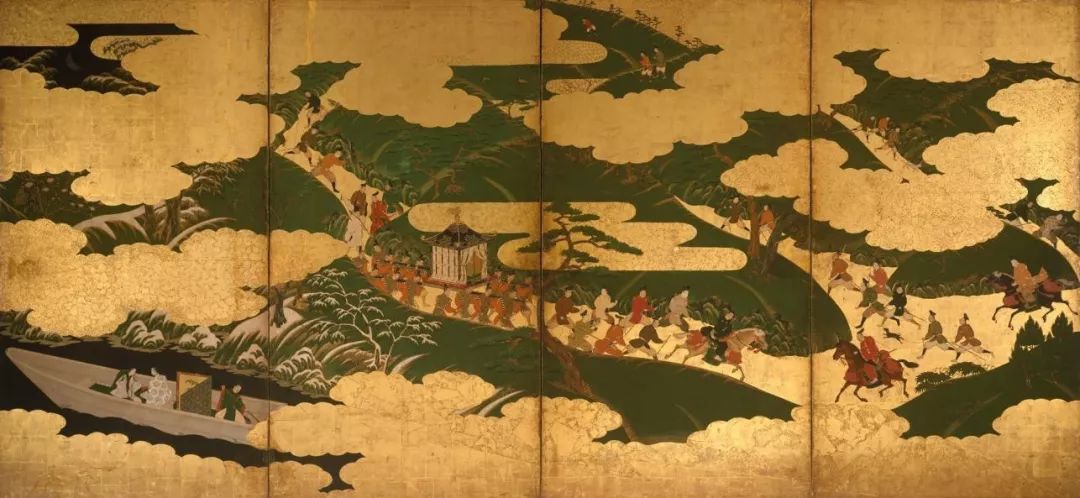 四折屏风画 金箔纸设色 纽约大都会博物馆藏
