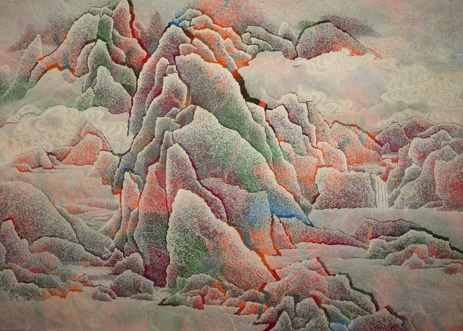 丙烯酸树脂纸本裱帆布,左下角签名