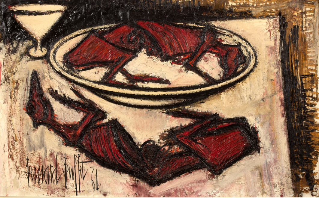 在大家都热烈地追求抽象的时候,伯纳德·巴菲特被称为“吝啬派”的具象风格却在努力确立自己的地位。他的自怜美学,充分体现了50年代初期的艺术氛围,当时他的作品已经形成了以黑色、尖锐的笔触为代表风格的特色。直到 2016 年,其作品在巴黎的两个展览中展出以后,才标志着艺术家重获青睐。