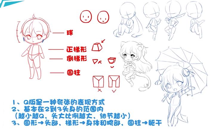Q版基本在两到三头身的范围内,如果是五头身那就是比较接近小孩子的真实比例看上去就没有那么Q了