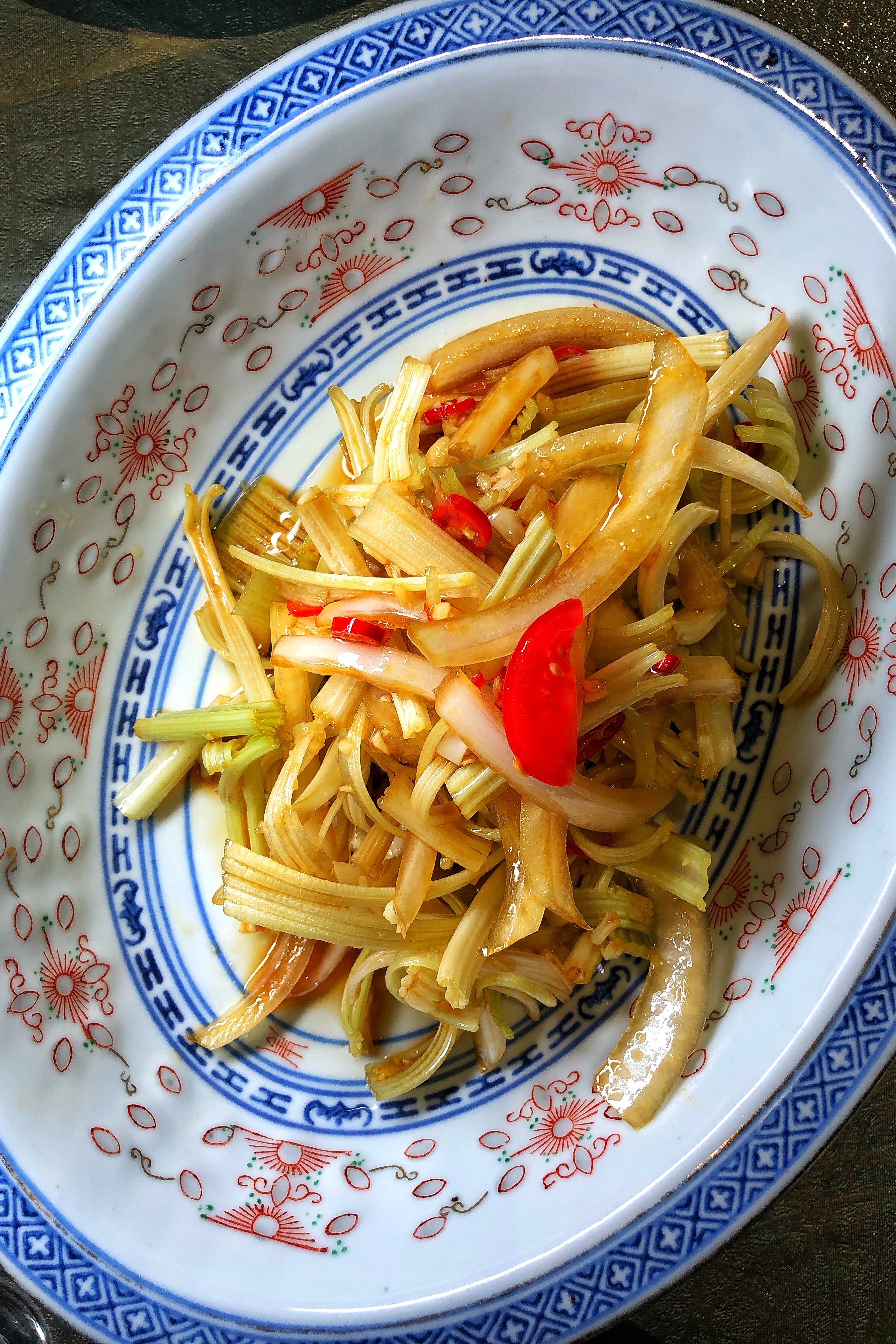 令我留下深刻印象的,还有凉拌菜马家沟芹菜。来自青岛平度的马家沟芹菜,脆嫩无渣,清香脱俗,是公认的芹菜最顶配。徐志摩写芹菜“青青绿绿的叶,脆脆嫩嫩的茎;清清雅的态,亭亭玉立的女”,用在这里,再恰当不过。芹菜喜欢15度左右的温度,由于根系较浅,所以需要较多的水,土壤ph值介乎6.5至7之间,这些条件马家沟都合适。