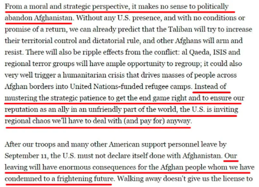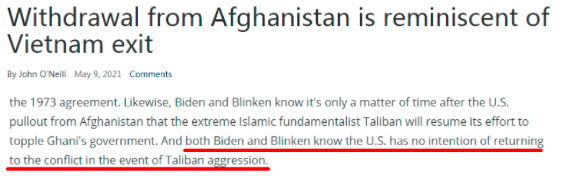 就像美国媒体指出的,这样的承诺无论在过去还是现在都是口说无凭。“拜登和布林肯都清楚”,美国撤军后,一旦阿富汗局势有变,“美国是不会愿意重返冲突的”。