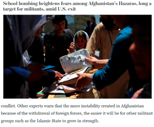 《华盛顿邮报》报道称,美国和北约的撤军导致阿富汗各地的暴力活动大大增加。专家已警告,外国军队撤出阿富汗所带来的不稳定状况越严重,“伊斯兰国”等极端组织就越容易在当地壮大起来。