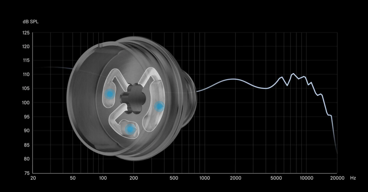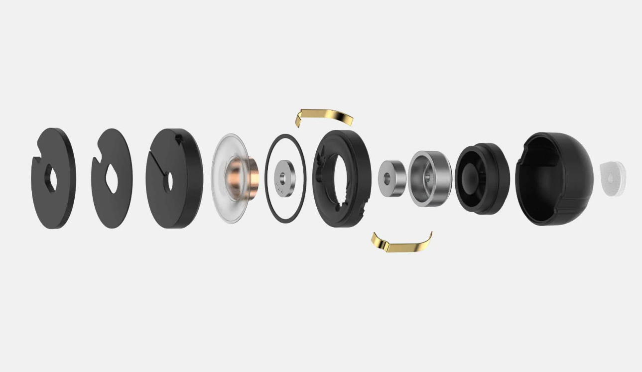 这款耳机采用 7mm TrueResponse 动圈单元,低阻尼振膜不具备任何纹路,与此前产品的微动圈单元类似。耳机具有复杂的塑料内腔体,两侧还具有金属抑震弹片。