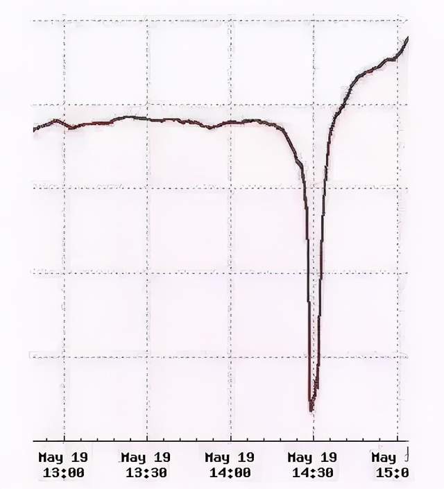 当时还未撤出的谷歌贴出了这张5月19日流量曲线:这暴跌的几分钟,是全国人为汶川地震默哀的三分钟