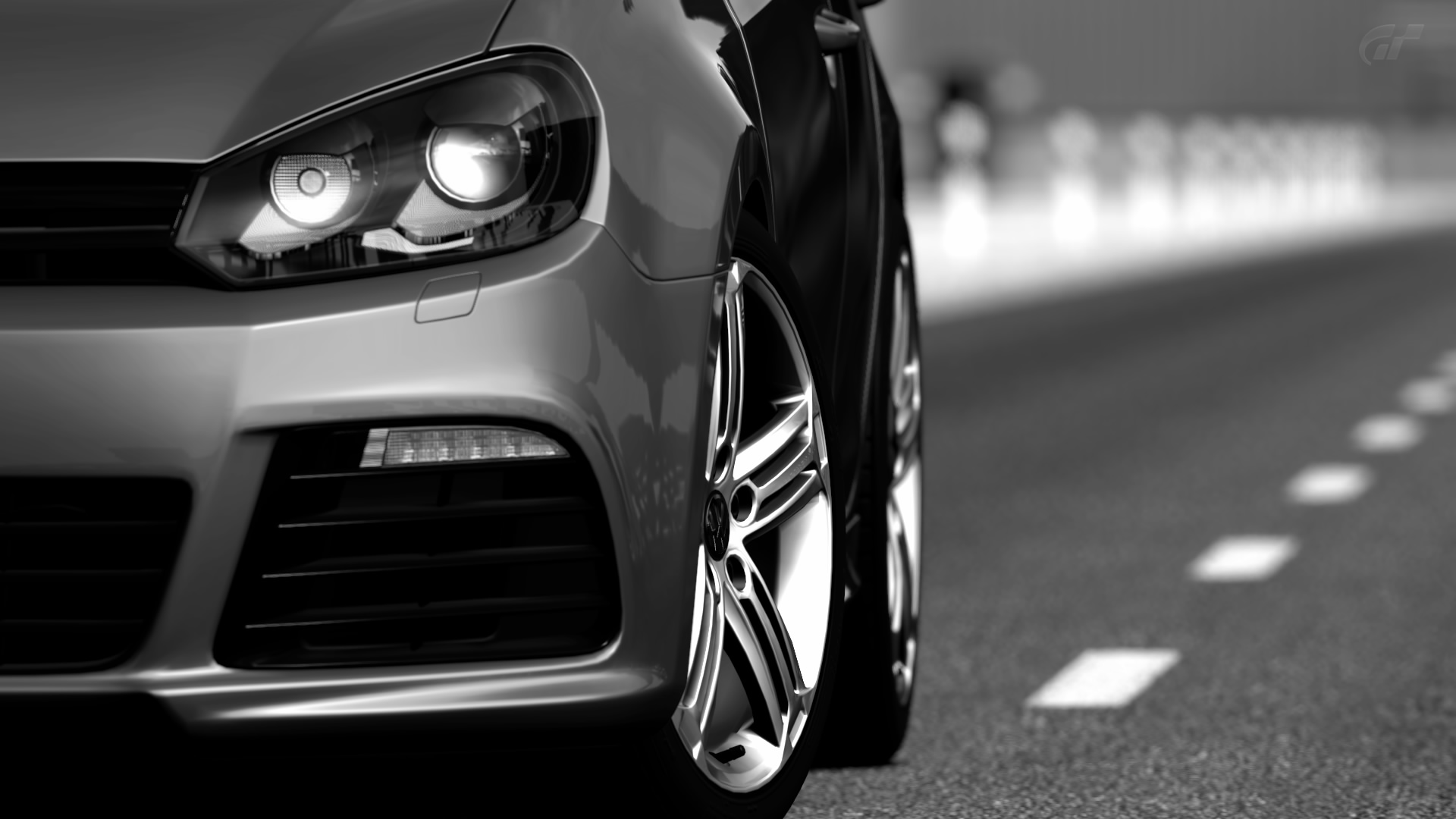 PlayStation 3《GT 赛车 6》Scape 模式截图。本图由作者本人拍摄,位于 PS20 光伏矩阵,车辆是 2011 Scirocco R。光圈 F/11,快门速度 1/16,焦距 500mm