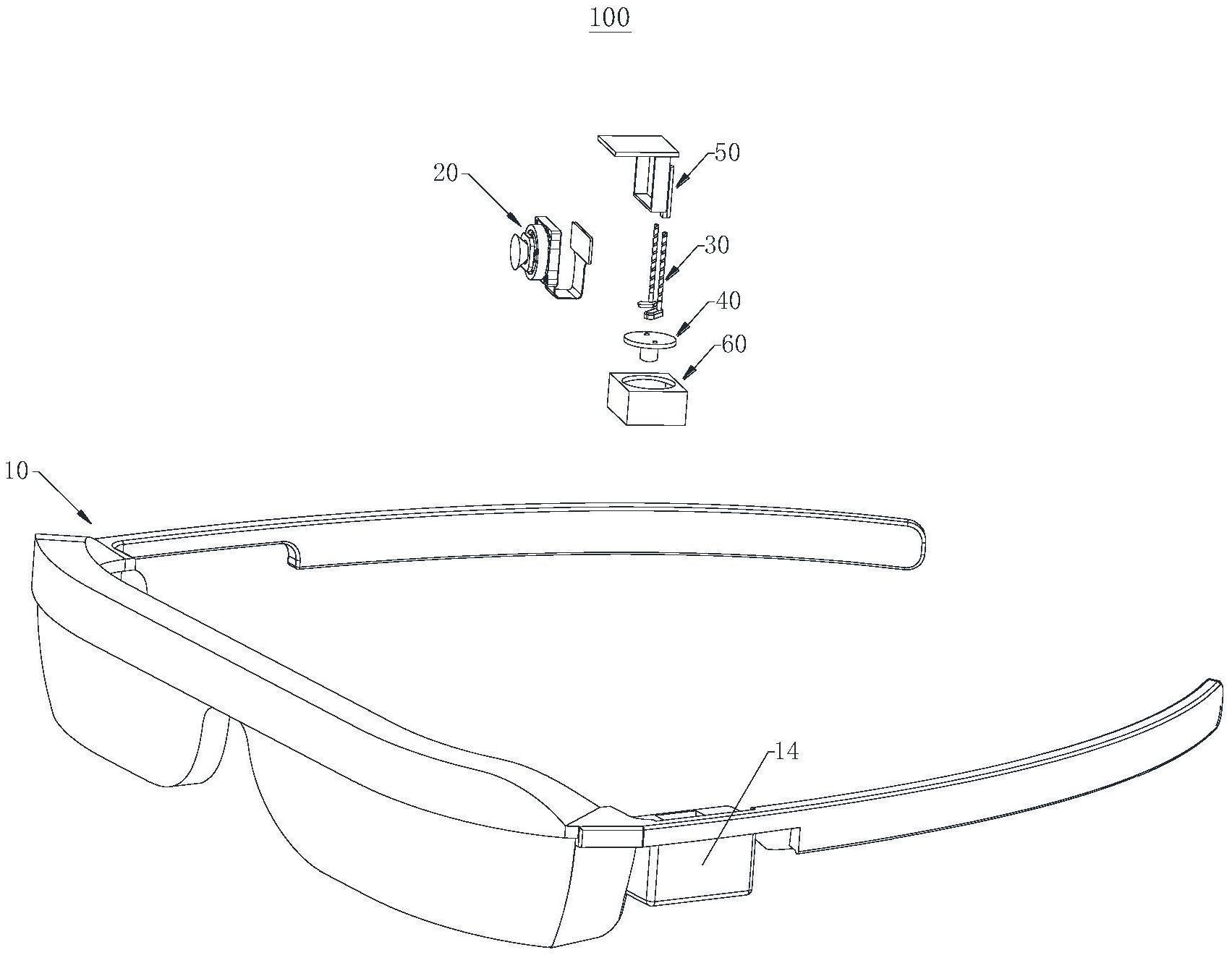 当需要使用拍摄组件进行拍摄或追踪等工作时,通过伸缩组件驱动拍摄组件伸出收容腔;当不需要使用该拍摄组件或者进入不能够进行拍摄的场所时,可以通过伸缩组件驱动拍摄组件缩入收容腔内,因而用户能够在任意场景下均能够佩戴该智能眼镜;旋转组件在拍摄组件伸出收容腔时驱动拍摄组件旋转,以改变拍摄组件的拍摄方向,从而增大拍摄组件的拍摄视角。