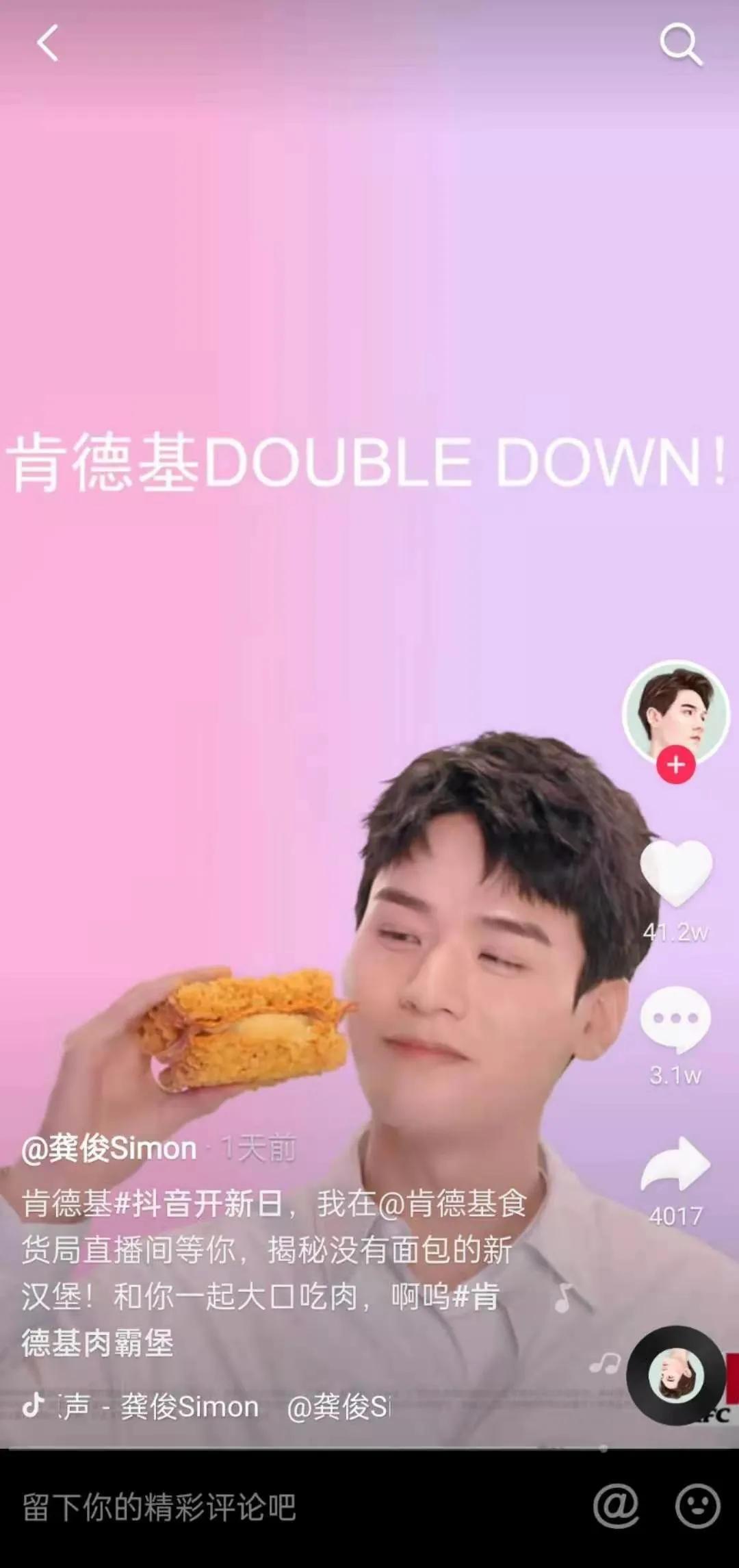 “共创”是肯德基与抖音开新日合作的起点。双方在策划阶段就开始相互配合,从玩法、策略到明星资源层面,全面探索效果最大化的新路径。所以人们看到,龚俊在品牌自播环节中表现抢眼,产生了远超“明星代言”模式的圈粉效果,实现明星、品牌方与平台的三赢。