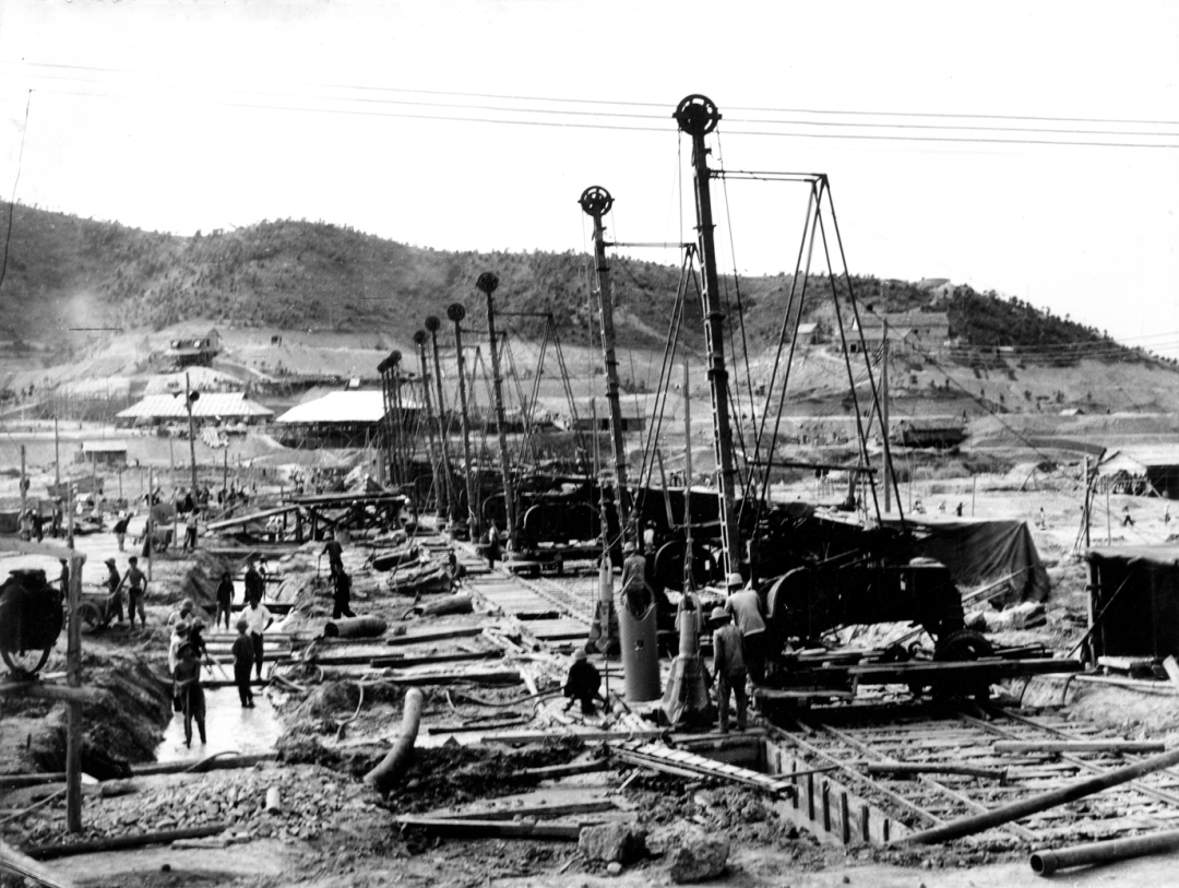 1968年,接收东江水的香港船湾淡水湖防浪墙施工场景。